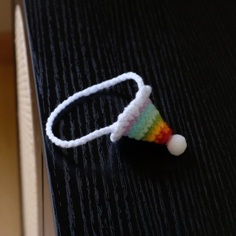 - Handmade accessory: Rainbow party hat (crocheted, slight variations may occur)