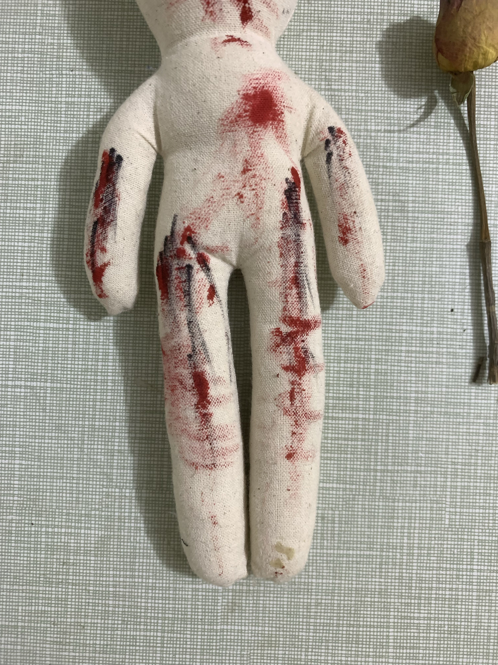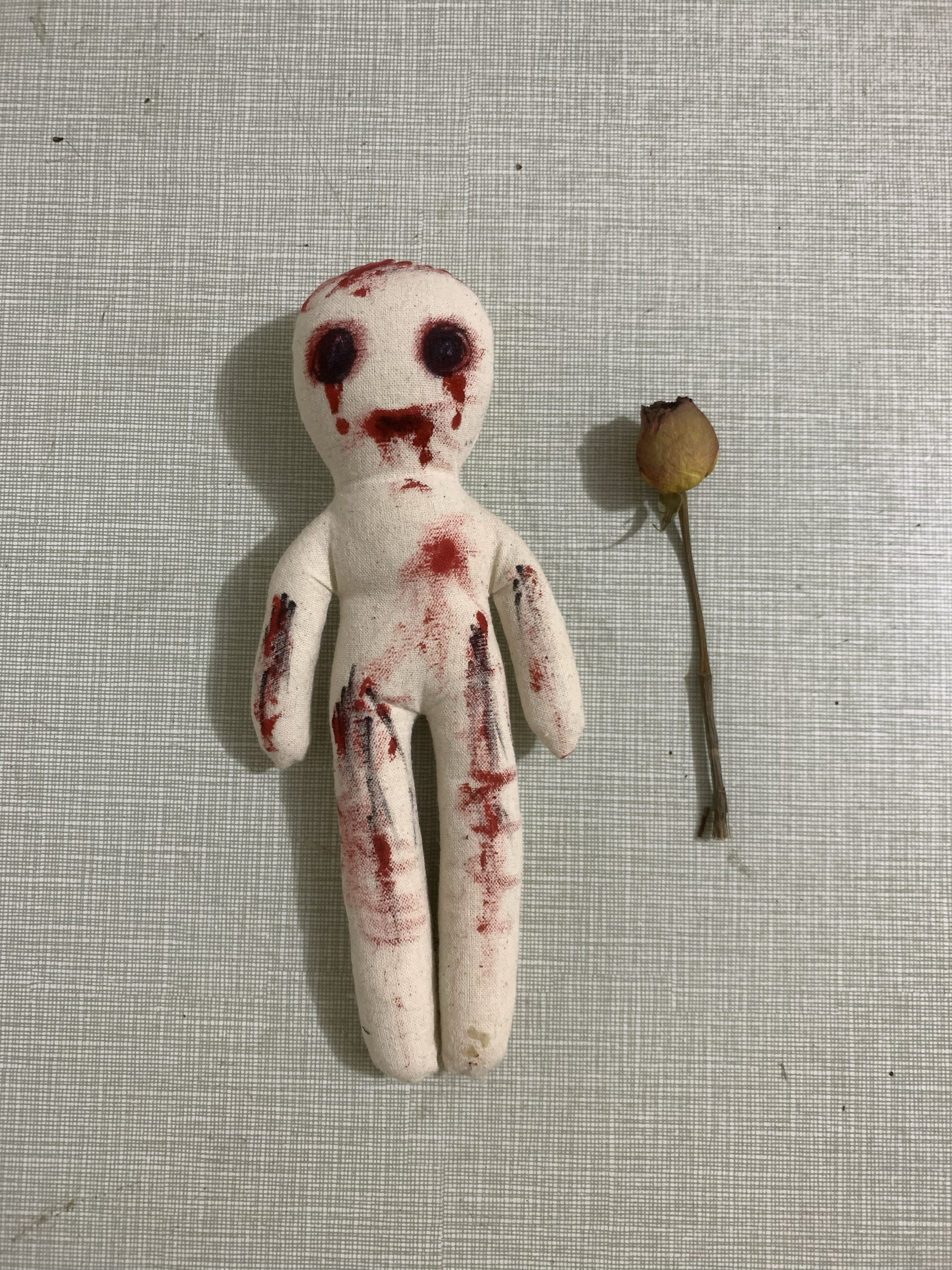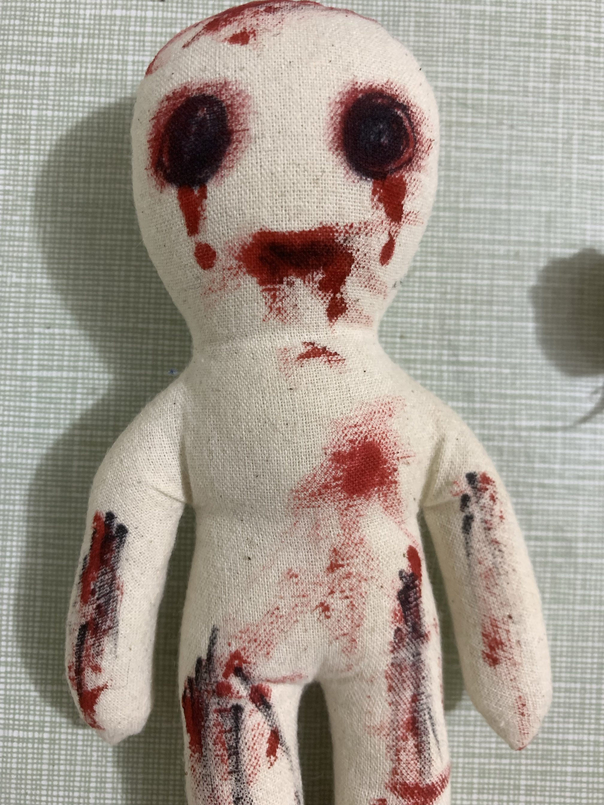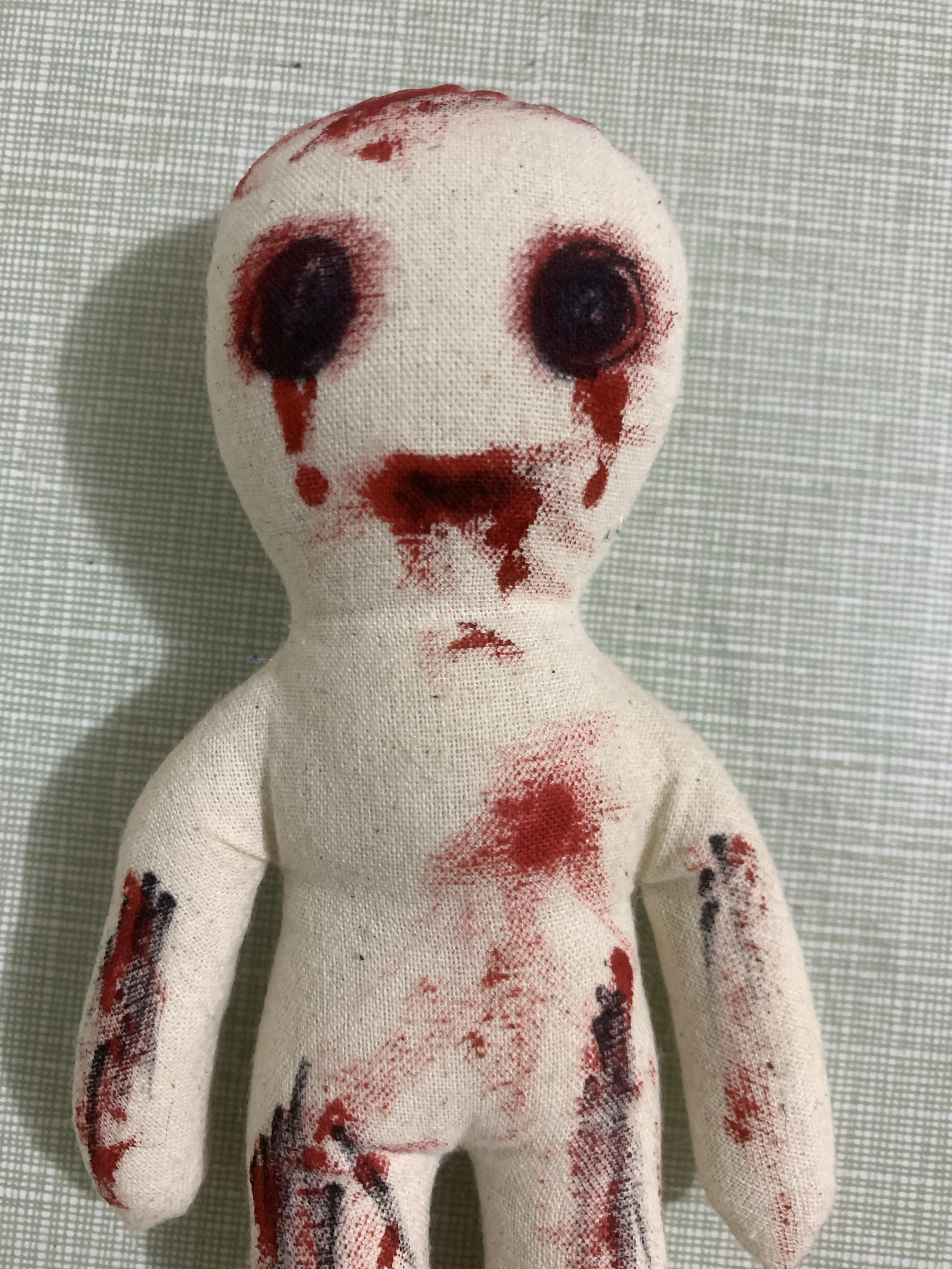 Add a spooky touch to your collection with this handmade creepy voodoo doll! Crafted from soft cotton-linen fabric, this 20cm doll features a distressed, blood-stained design that’s perfect for horror-themed cosplay, escape room props, or as a unique gift for horror fans. Each piece is uniquely handmade, so no two are exactly alike.