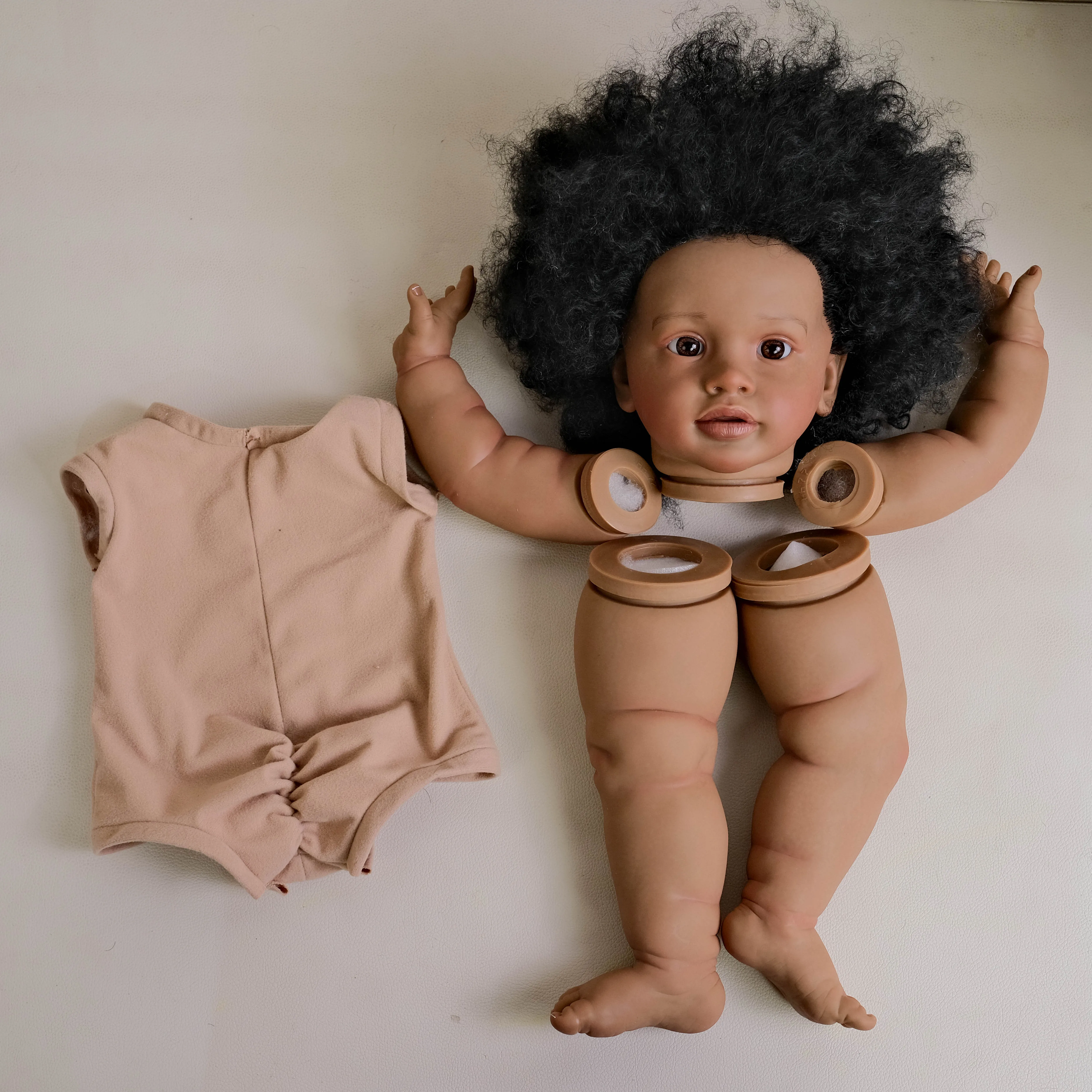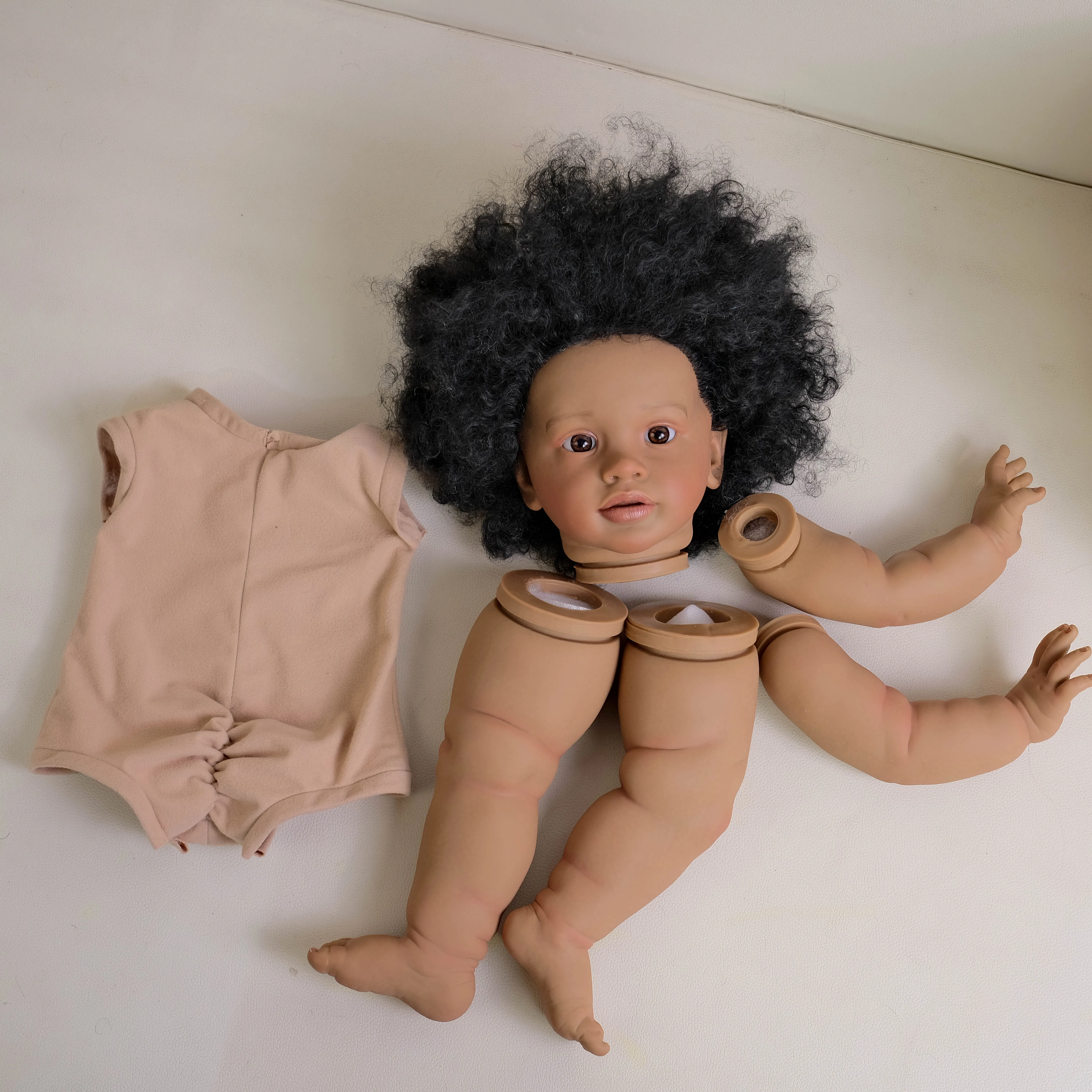 26inch Dark Skin Lifelike Finished Doll Size Already painted doll parts with Cloth Body Pippa DIY Toys Gifts for Children